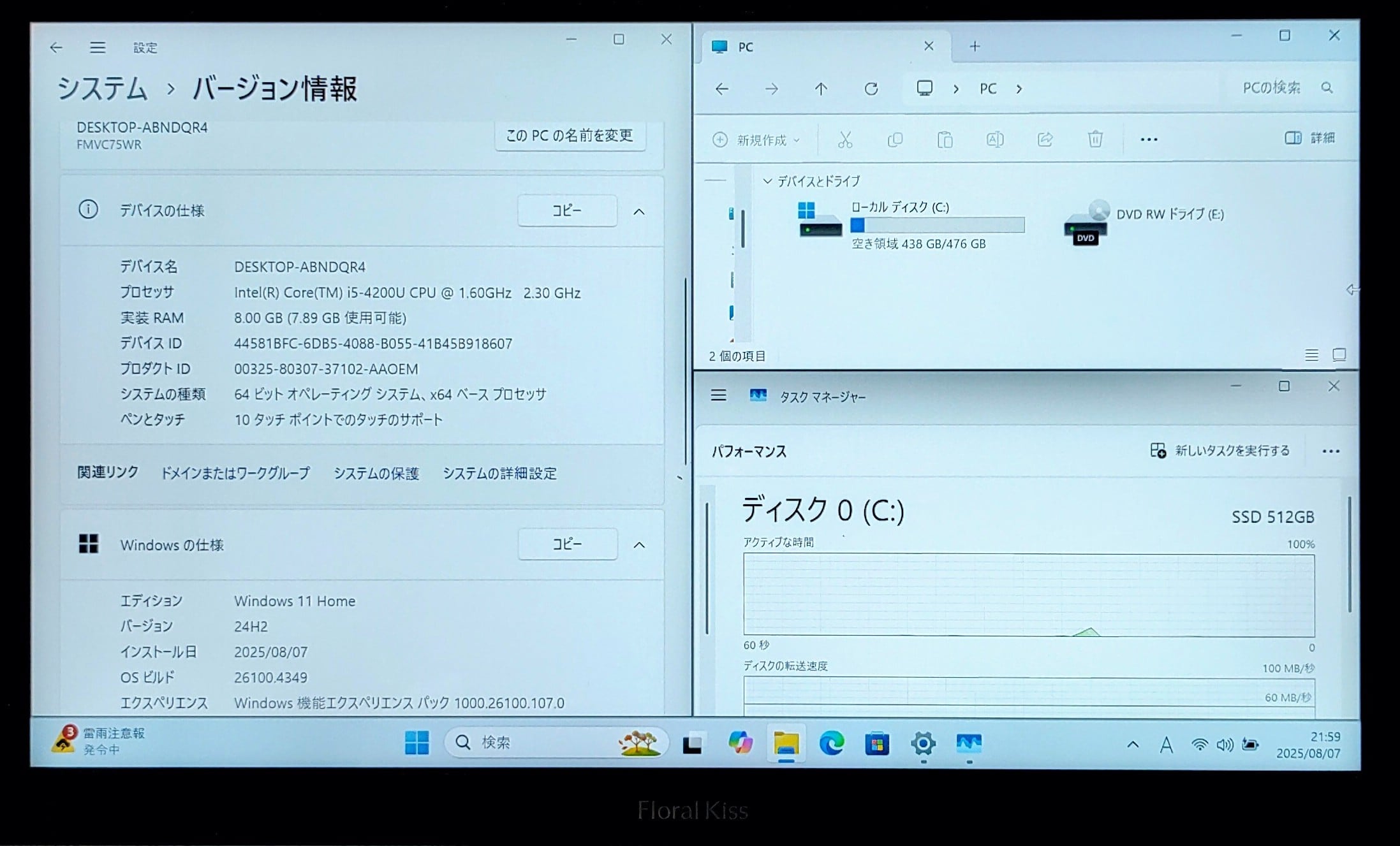 ・OS:Windows11 Home 64bit(ライセンス認証済)